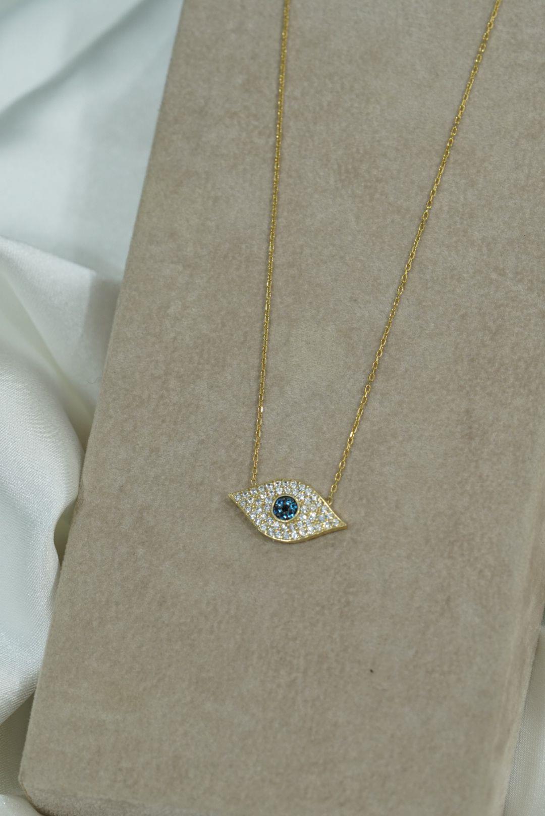 Taşlı Göz Kolye, anlamı ve enerjisiyle ön plana çıkan özel bir tasarımdır. Göz formu, yüzyıllardır koruma, huzur ve içsel denge sembolü olarak kullanılır. Merkezdeki mavi taş, negatif enerjiyi uzaklaştırırken; çevresini saran ışıltılı zirkon taşlar kolyeye modern bir parlaklık kazandırır.